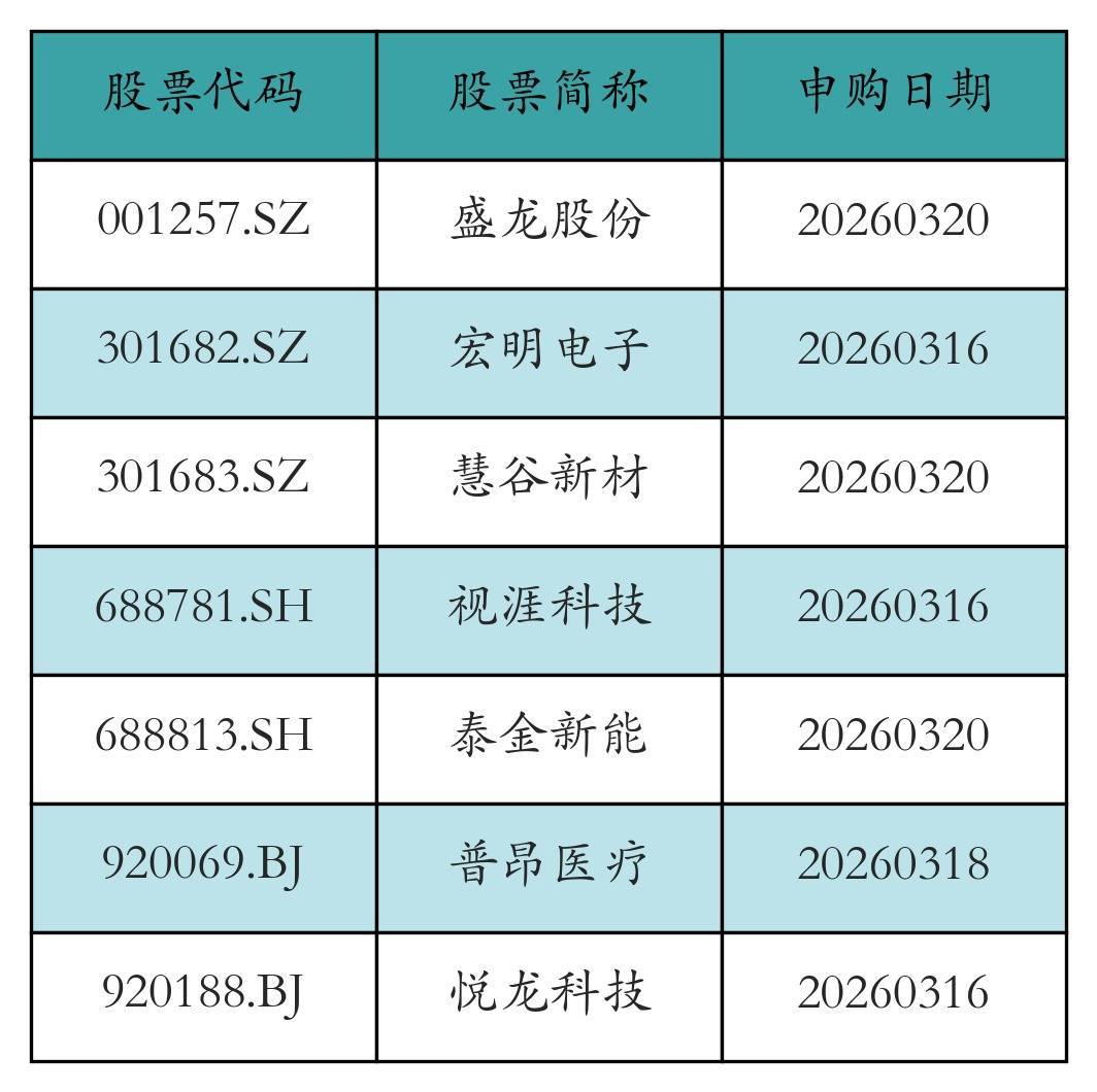 二、新股申购情况上周有7只新股发行,详情见下表: